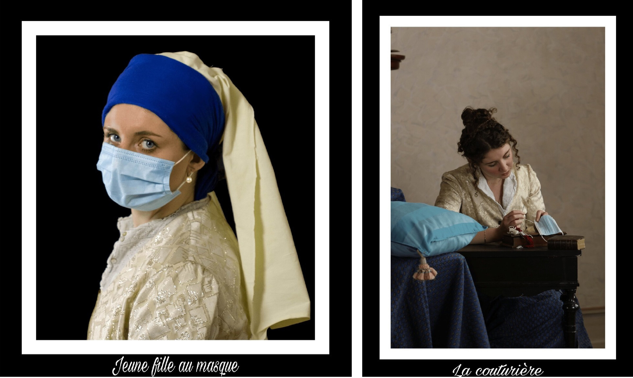 À travers ce projet photographique Duplications, Valentine a voulu reproduire des tableaux connus qui l'ont touchés particulièrement. Cependant, elle a voulu dupliquer ces œuvres en tenant compte du contexte actuel de la crise sanitaire de 2020 et en utilisant la photographie. Pour ancrer ces duplications d’œuvres dans la réalité, elle a ajouté des objets qui font référence à la crise sanitaire. Pour cela, l’artiste a donc sorti son studio photographique et fait poser quatre personnes (ainsi qu'elle-même en activant le décompte de l'appareil photo). Il y a eu beaucoup de travail avec les ombres et les lumières ainsi que sur Photoshop. Elle s'est inspirée d'un élan de reproduction qui a eu lieu lors du premier confinement mais elle a ajouté sa touche personnelle. Après plusieurs séances et environ deux cents photos, elle a gardé les cinq meilleures et fait un montage pour les mettre à côté du tableau original afin que les spectateurs puissent faire le rapprochement. L’artiste a fait attention aux moindres détails, que ce soit pour le costume ou la composition spatiale de la peinture, allant même jusqu'au maquillage. Elle s'est particulièrement inspirée de l'artiste Vermeer car ses tableaux se caractérisent par un beau travail sur la lumière ; elle voulait effectuer ce même travail sur la lumière en photographie. Mais aussi de Brouwer pour la composition des personnages. Et de Van Gogh pour l'étrangeté de son autoportrait. Son but était de marquer cette crise mondiale et historique à travers l'art pour que les traces de cette crise ne soient pas seulement politiques, économiques ou sociales mais aussi artistiques.
