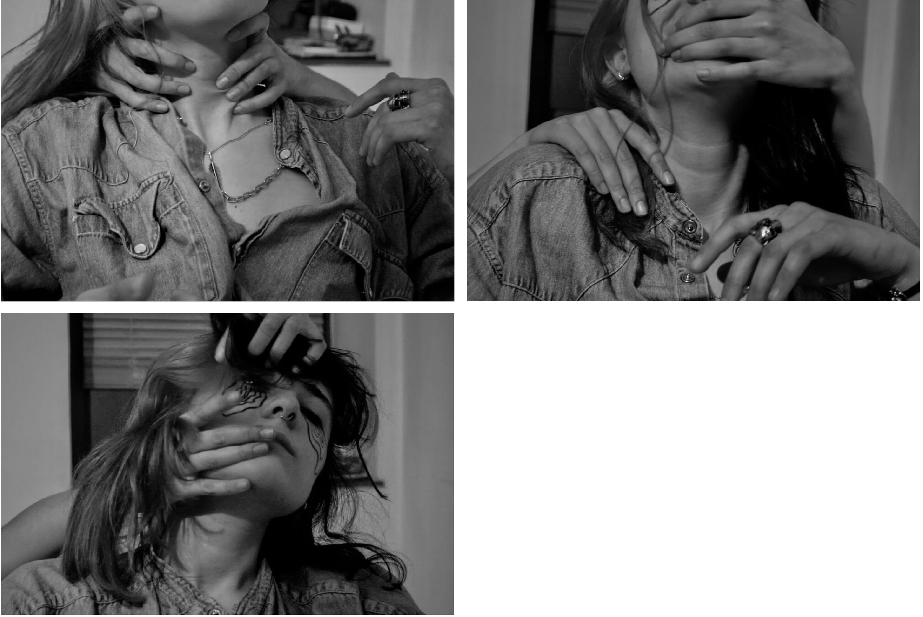 À travers ces photographies, les mains évoquent l’angoisse, prenant possession du propre corps représenté. Elles jouent avec, tirent et arrachent la peau. On observe une certaine évolution au cours de cette série.
